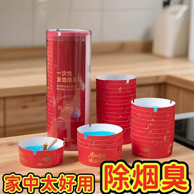 一次性烟灰缸自带灭烟沙加厚加硬马年新年喜庆款烟灰缸去味免洗