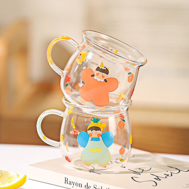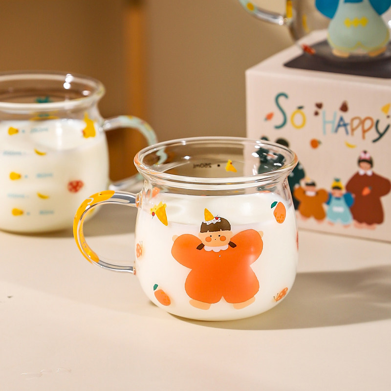 川岛屋儿童带刻度牛奶杯微波炉可加热专用热奶杯玻璃水杯早餐杯子