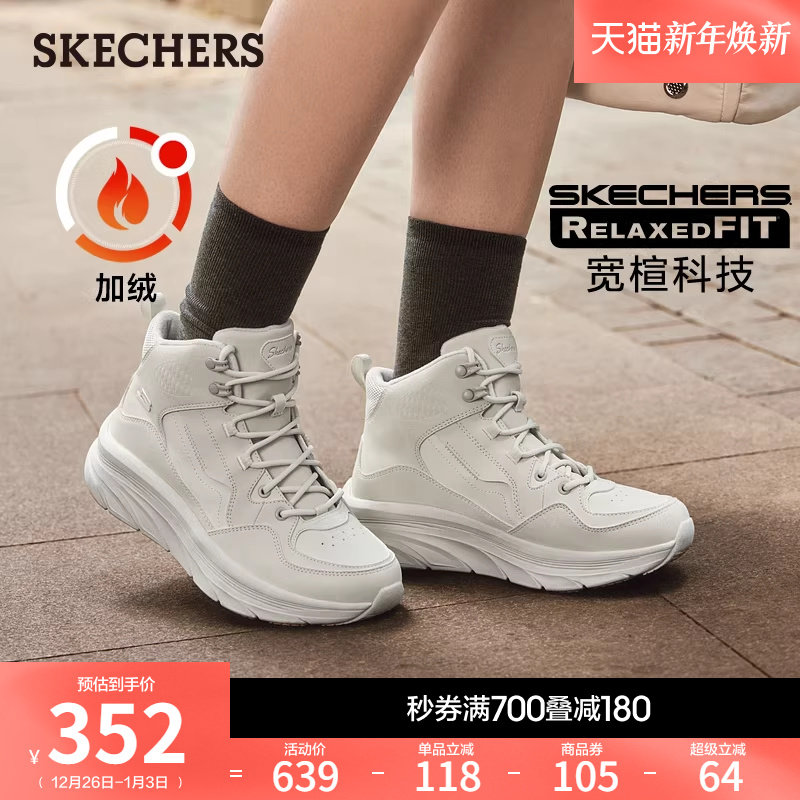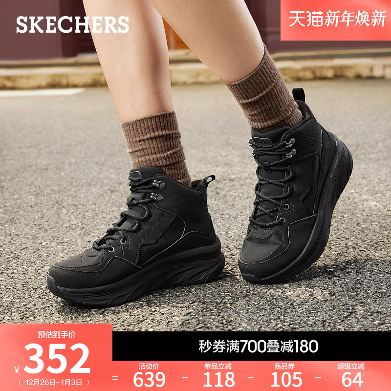 Skechers斯凯奇女鞋秋冬季高帮加绒棉鞋厚底保暖增高老爹鞋二棉鞋