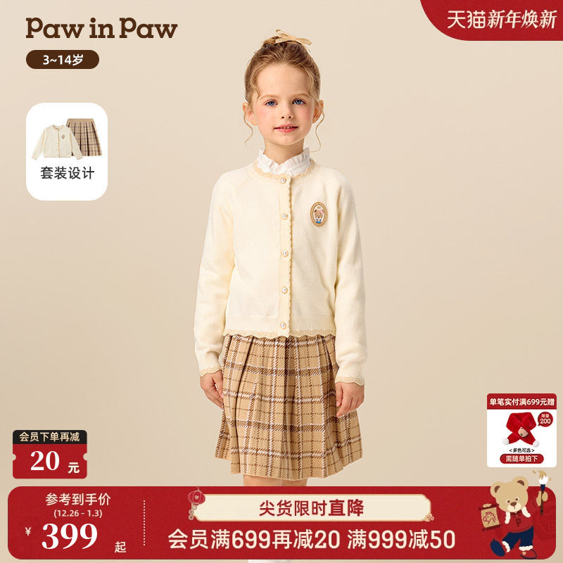 【商场同款】PawinPaw卡通小熊童装25年冬季新款女童毛织套装裙