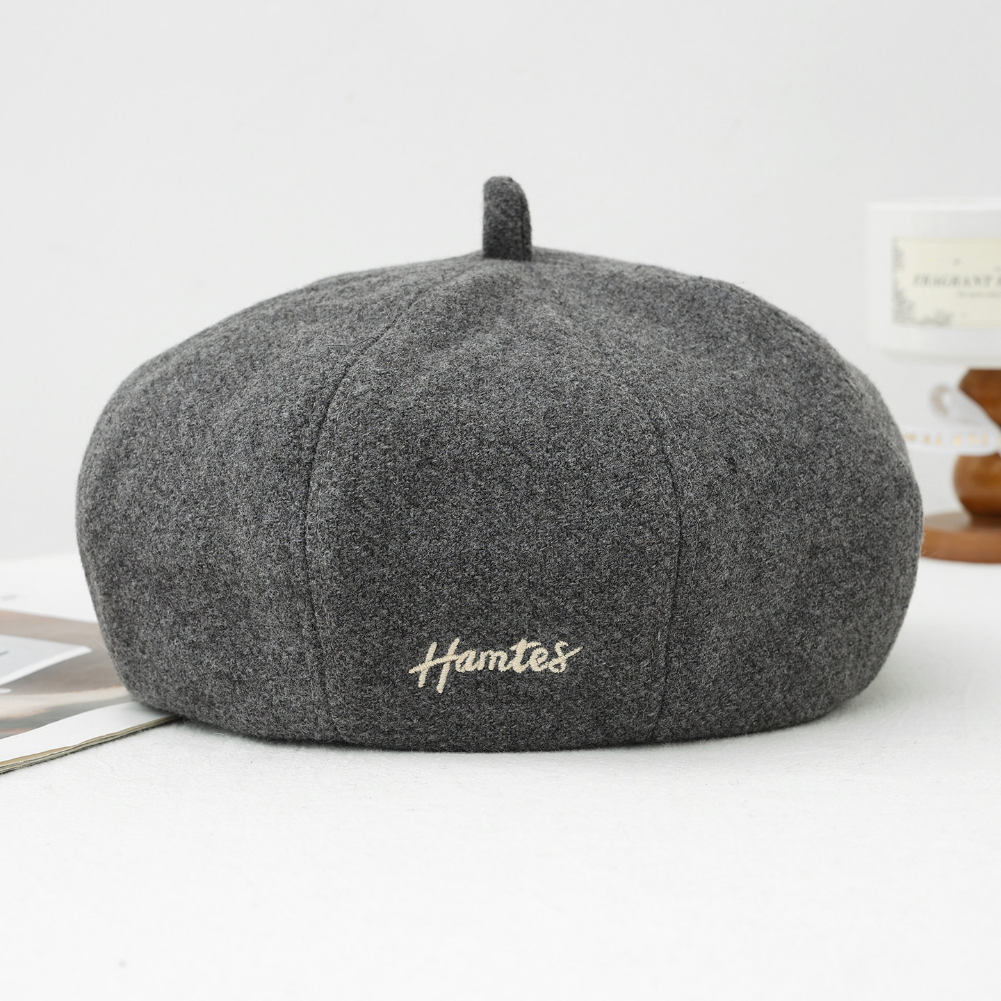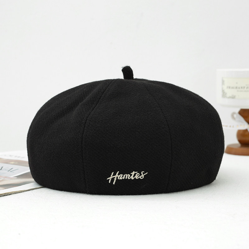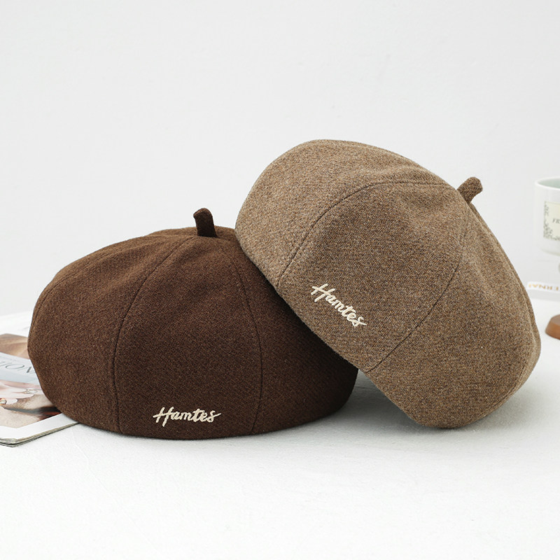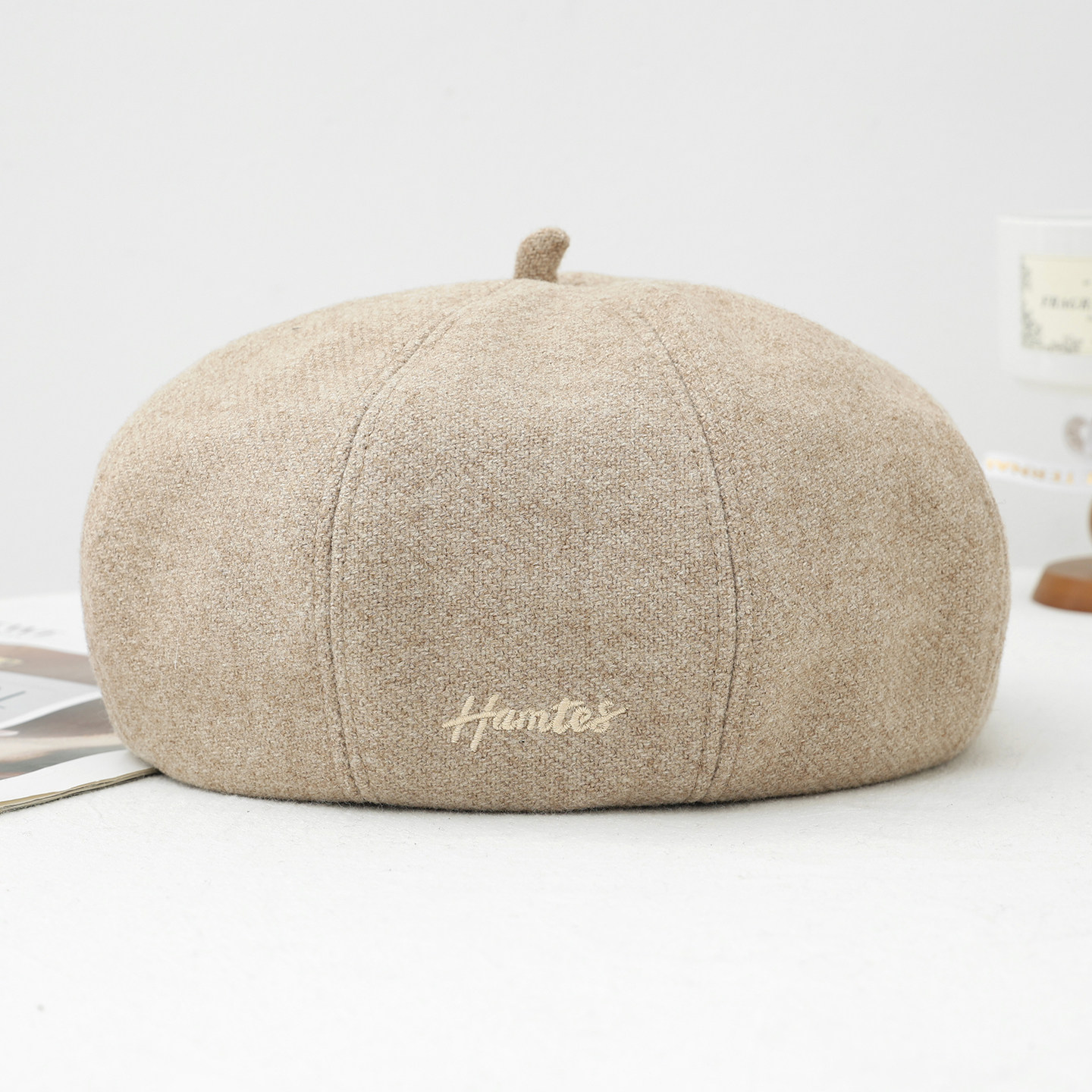 新款简约字母刺绣贝雷帽子女春秋季复古英伦风百搭显脸小画家帽潮
