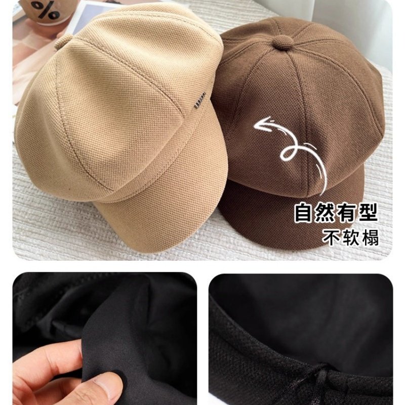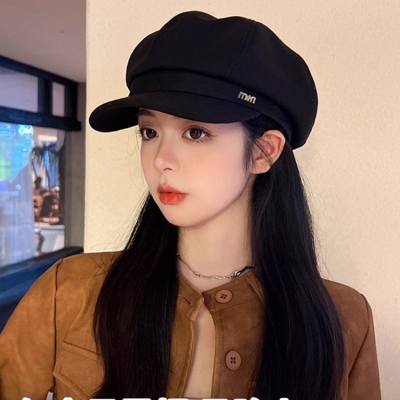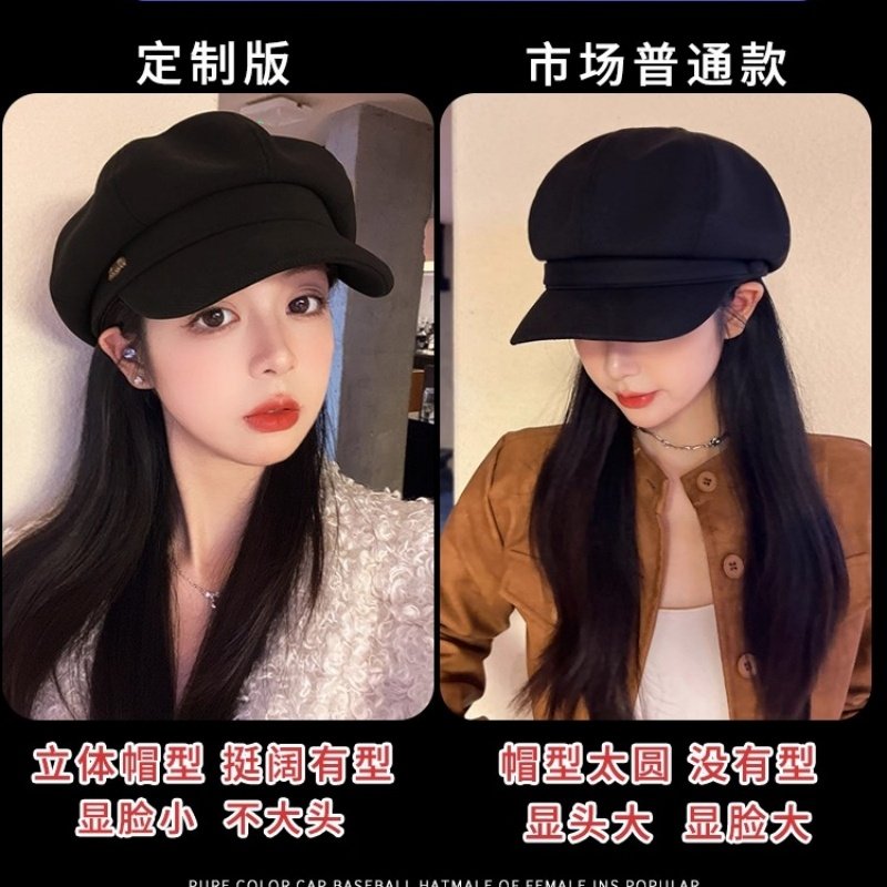 新款贝雷帽女秋冬显脸小鸭舌八角帽大头围法式复古黑色报童帽子潮
