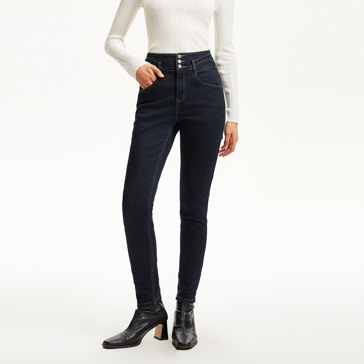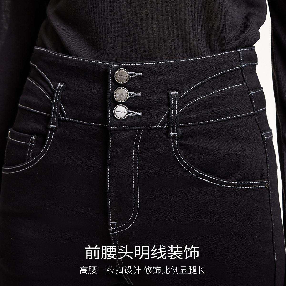 Vero Moda奥莱牛仔裤女2025秋季新款高腰三粒扣宽腰头小脚裤休闲