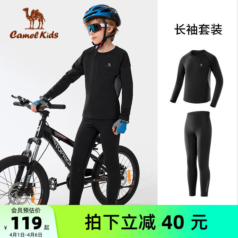 骆驼儿童健身套装2026春季新款紧身衣训练服运动服跑步篮球足球服
