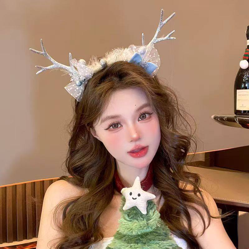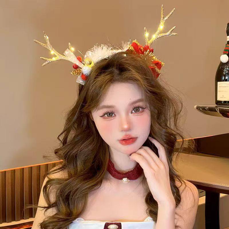 圣诞节圣诞头饰鹿角头箍发箍森系拍照道具发饰发卡短发发光小鹿