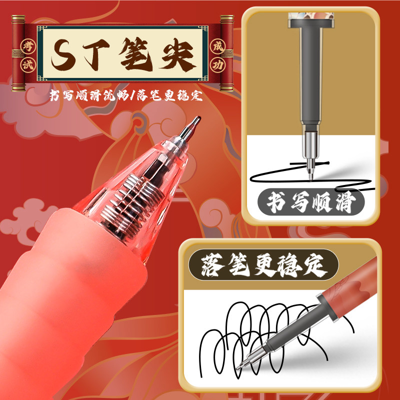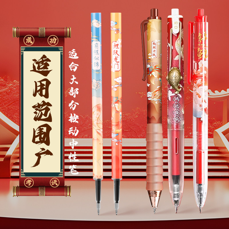 晨光锦鲤按动笔芯黑色速干ST笔头中性笔替芯0.5mm学生用刷题考试专用办公水笔芯中国风高颜值替换芯黑色笔芯