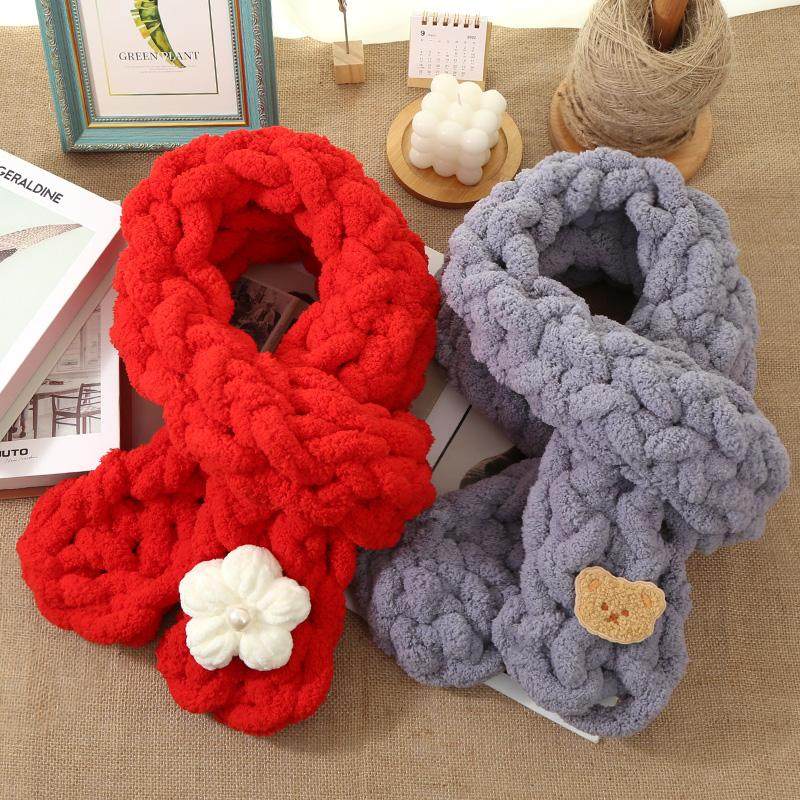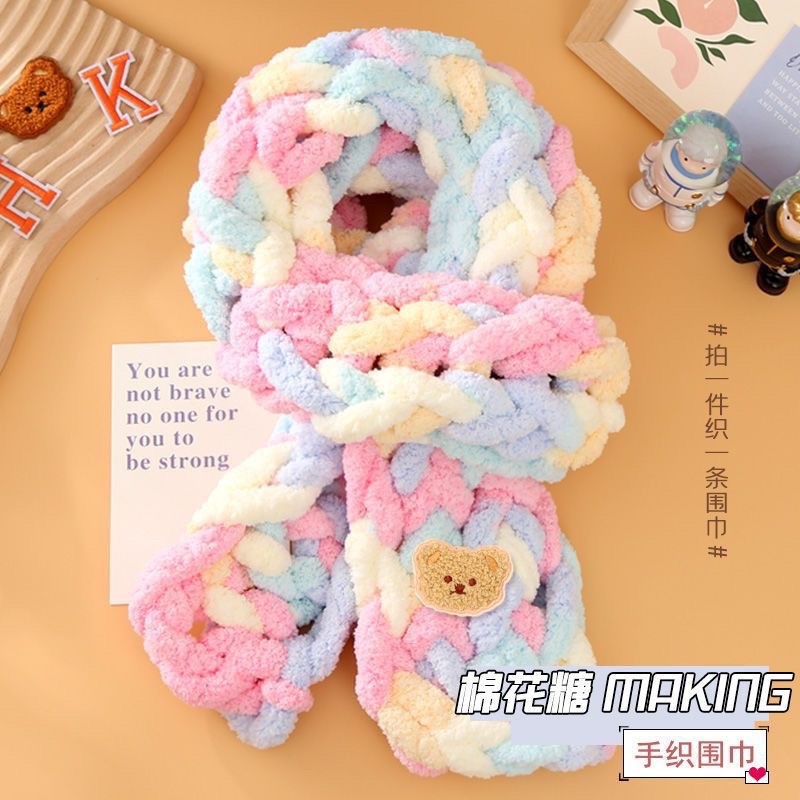 学生手织围巾毛线团猫尾巴粗冰条编织送男女朋友diy材料包织围脖