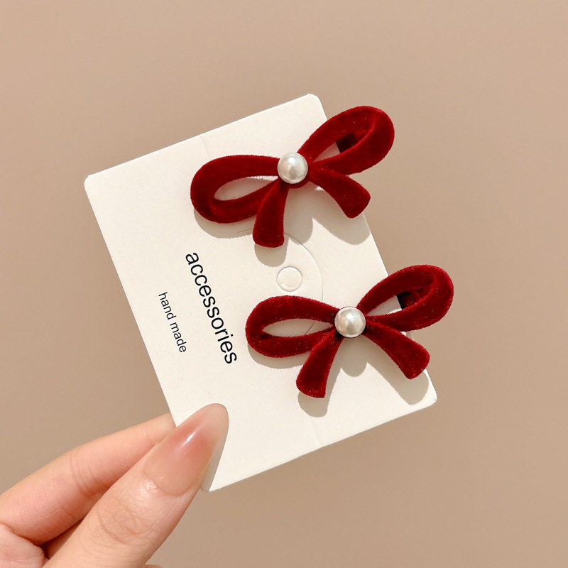 秋冬丝绒蝴蝶结发夹女高级感侧边刘海夹碎发夹子气质红色新年头饰
