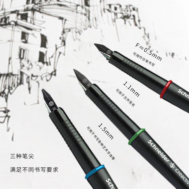 Schneider/施耐德施耐德美工钢笔学生用美术设计专用钢笔书写艺术画画绘画F尖粗笔尖 0.5mm 1.1mm 1.5mm