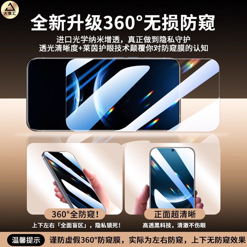 [不沾指纹]适用iPhone17/16钢化膜苹果15/14手机13promax防窥12全屏XR/xsmax全包11贴X防摔8por高清plus