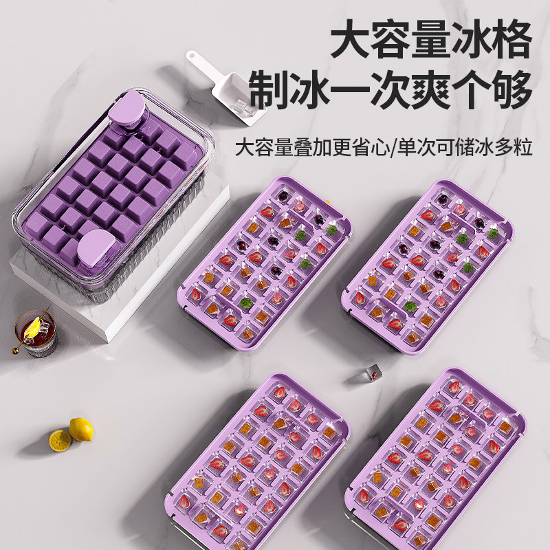 冰块模具大容量按压冰格家用食品级制冰储冰盒带盖冰箱冻冰块神器