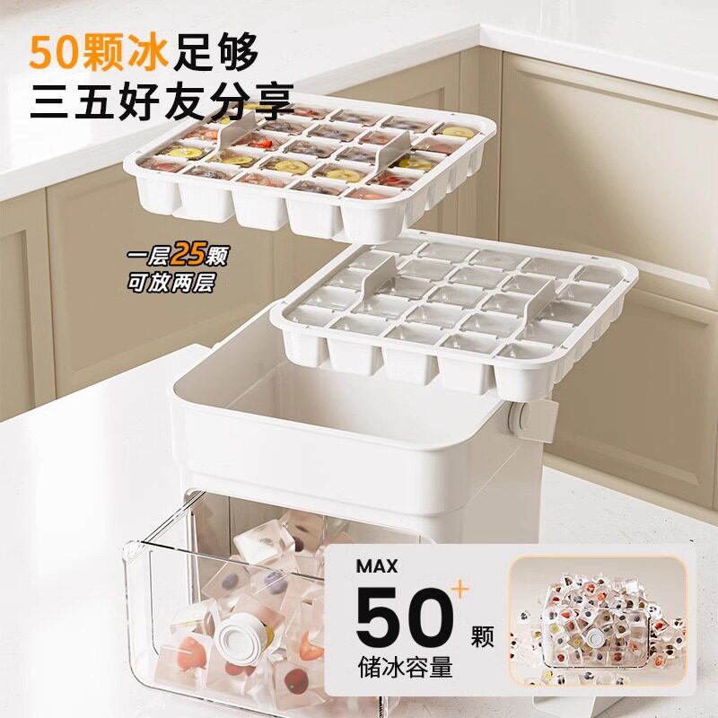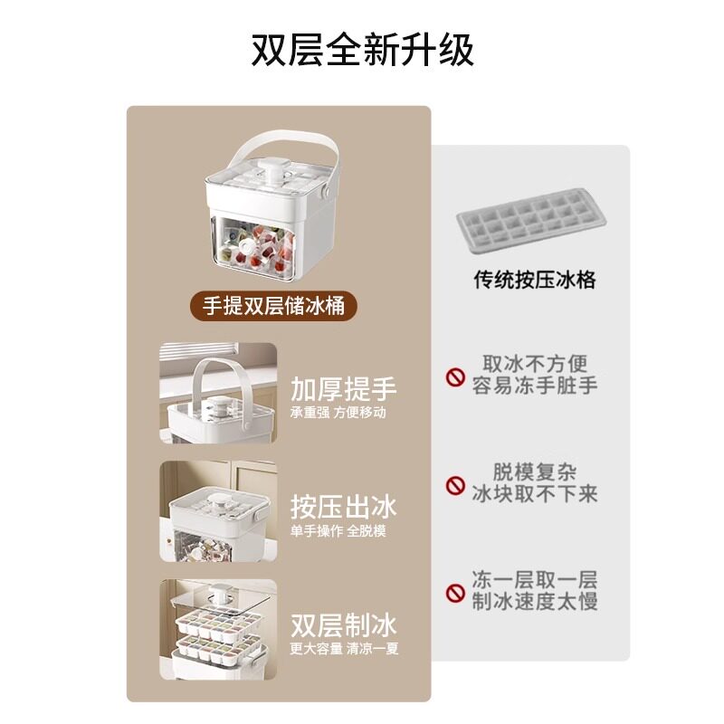 按压冰格冰块模具制冰盒冻冰球神器磨具大容量储冰家用食品级冰箱