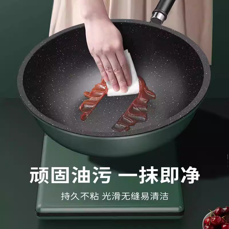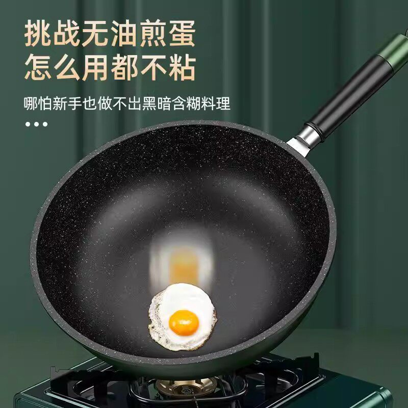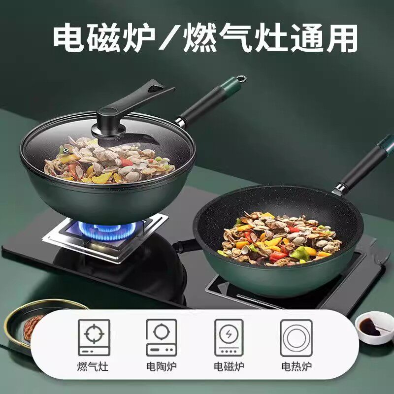麦饭石炒锅平底锅不粘锅加厚家用多功能炒菜锅电磁炉燃气灶专用锅