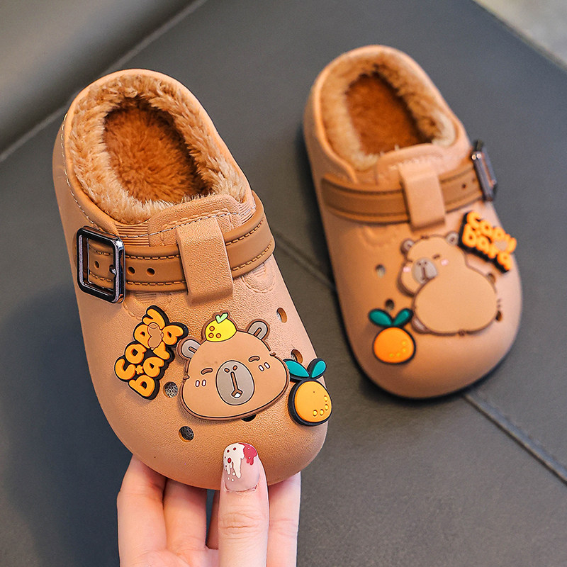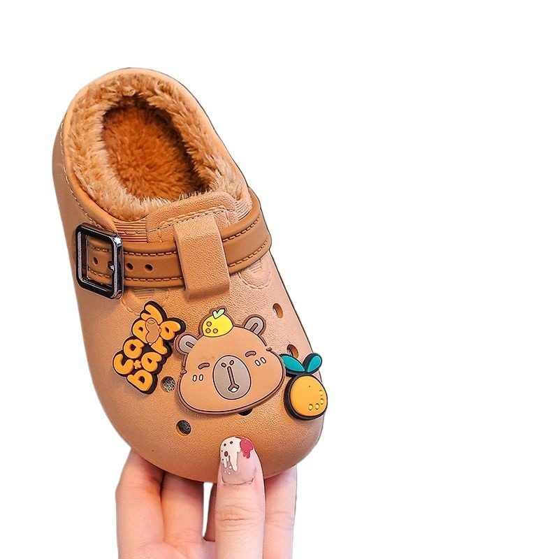 卡皮巴拉儿童博肯拖鞋女童2025新款冬可爱防水室外穿男童棉拖包跟