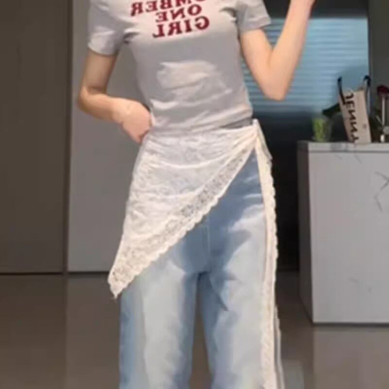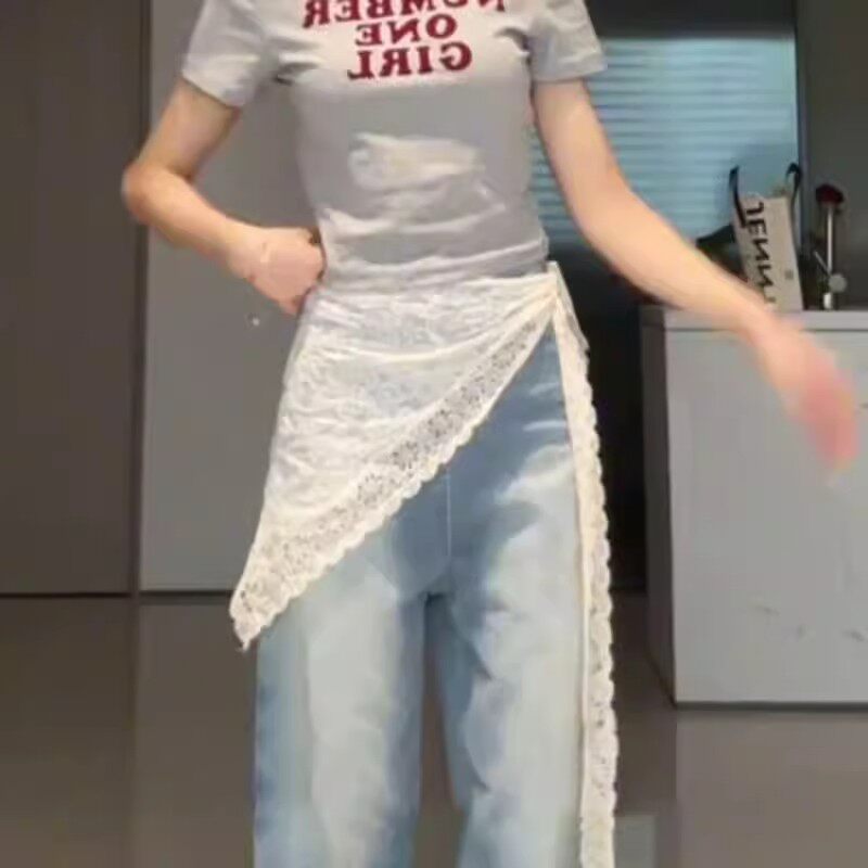 韩式蕾丝花边腰带配饰女配牛仔裤屁帘杏色腰巾三角巾丝巾搭配头巾