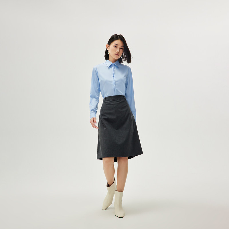 HLA/海澜之家商务长袖女士正装微弹白衬衫秋新款翻领通勤直筒衬衣