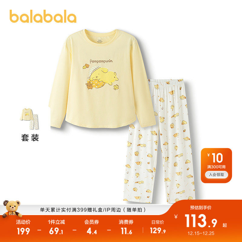 【hellokittyIP商场同款】巴拉巴拉儿童睡衣套装秋新品女童家居服