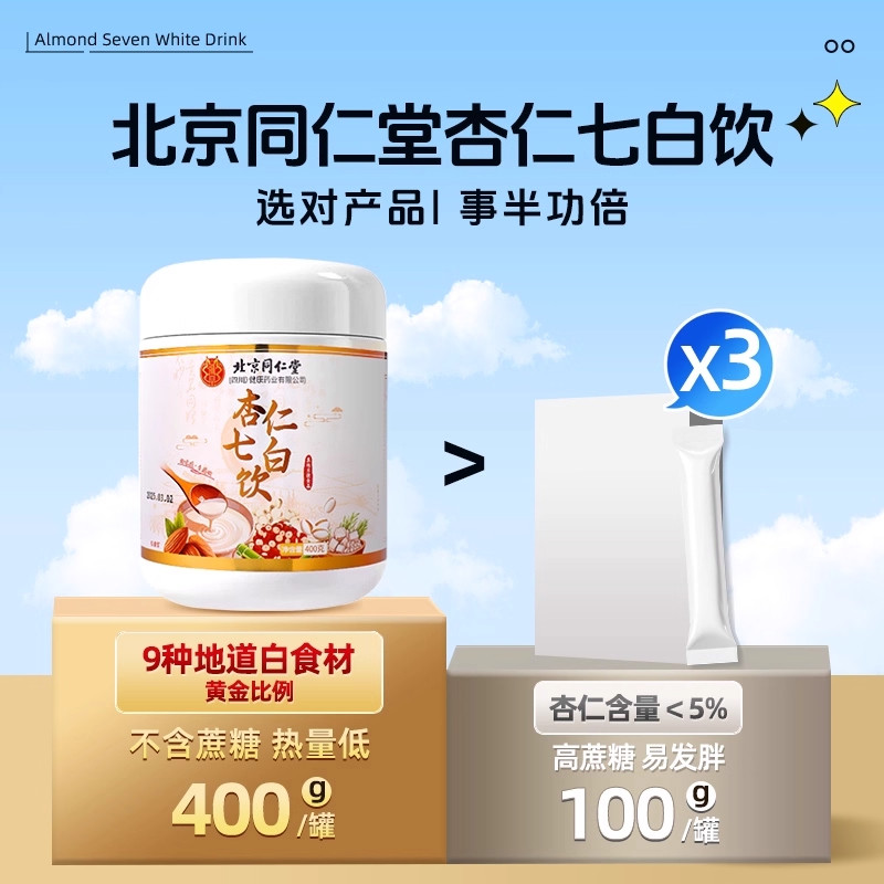 同仁堂杏仁七白饮官方旗舰杏仁粉营养早餐冲泡即食饮品纯代餐正品