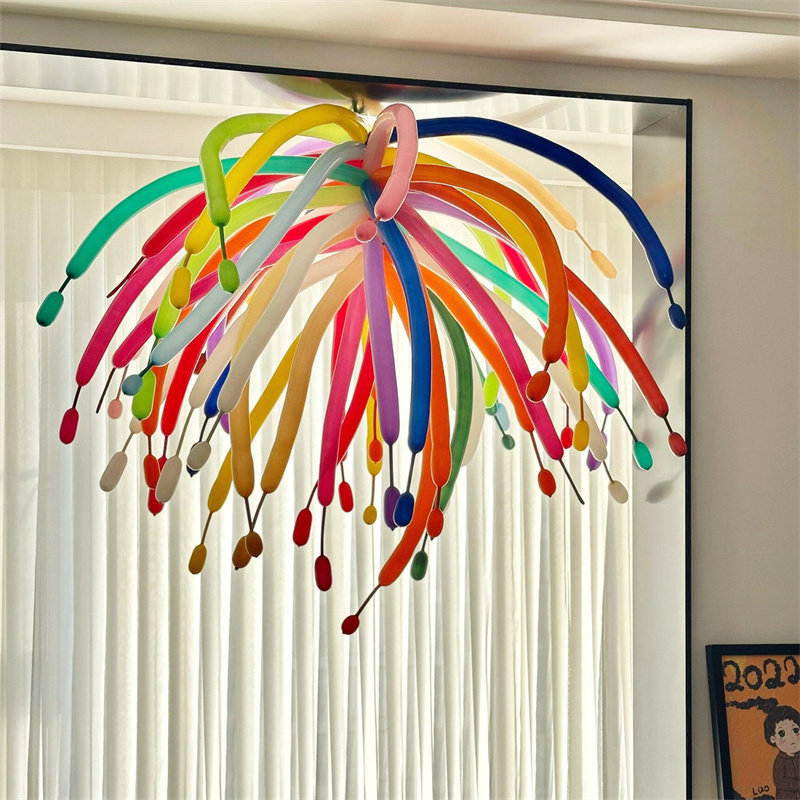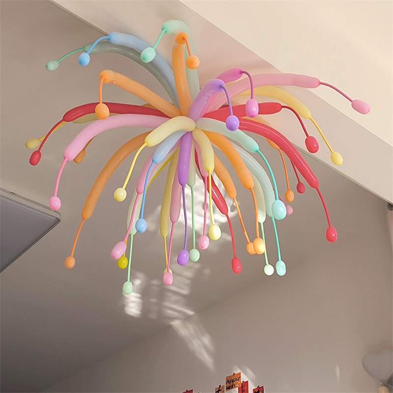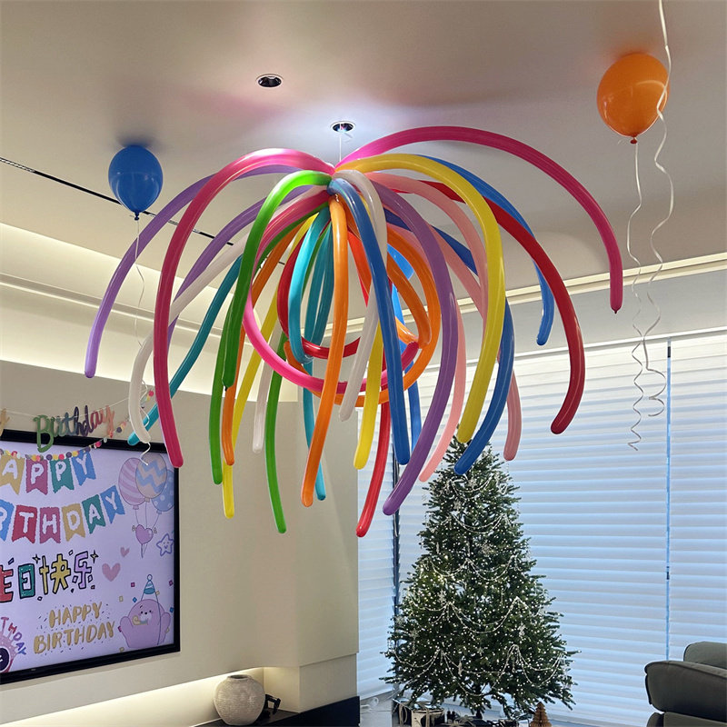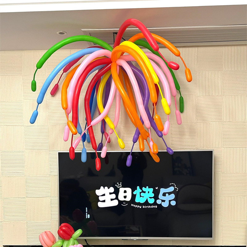 多巴胺生日装饰长条气球场景布置彩色烟花儿童周岁派对拍照背景墙