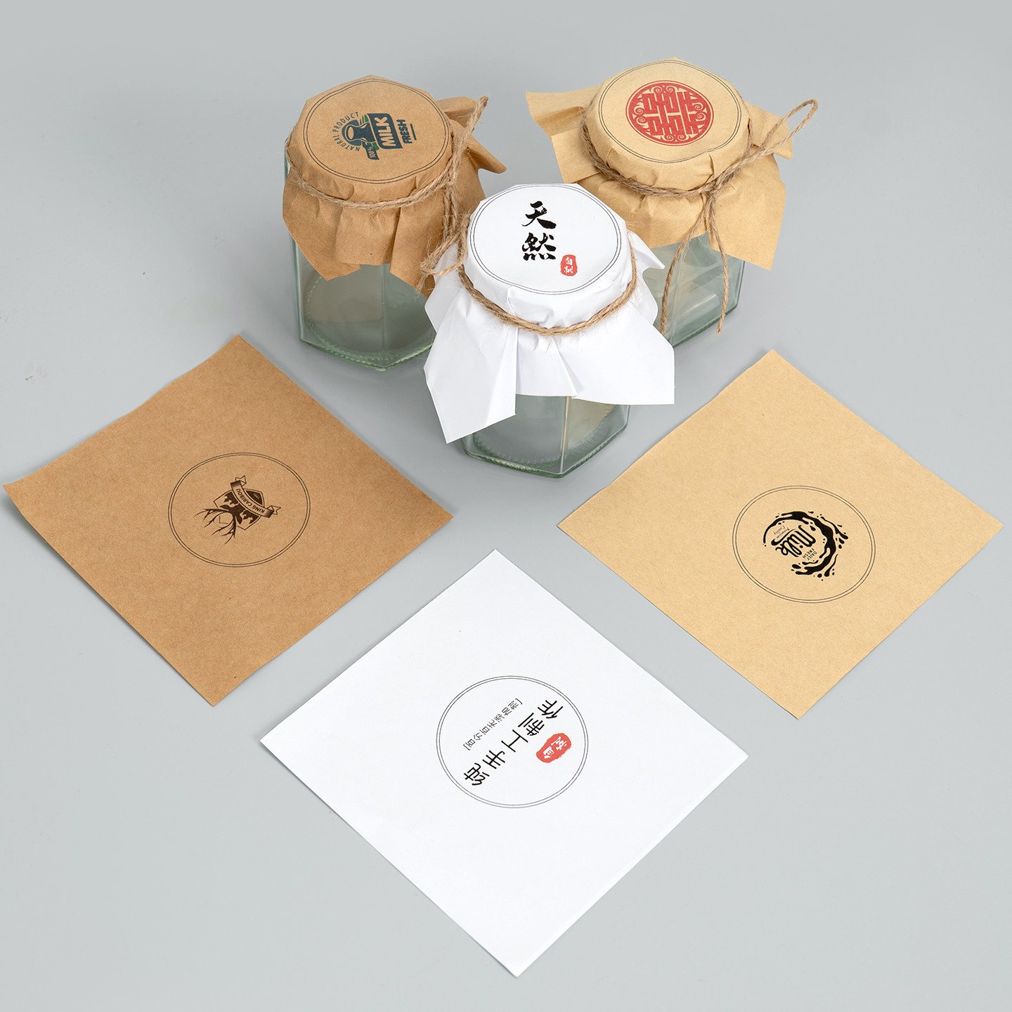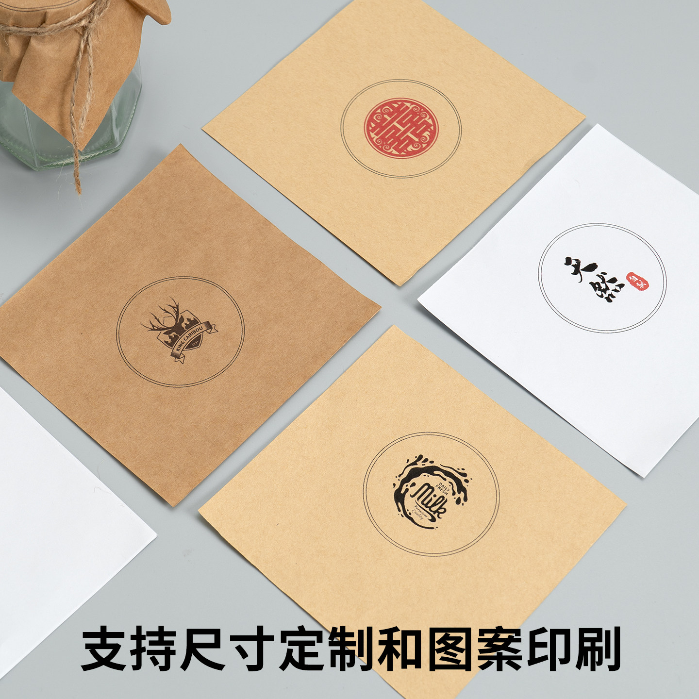 食品瓶盖封口纸布丁酸奶辣椒酱蜂蜜瓶盖包装纸 棕色复古牛皮纸正方形包装纸12*12 15*15CM