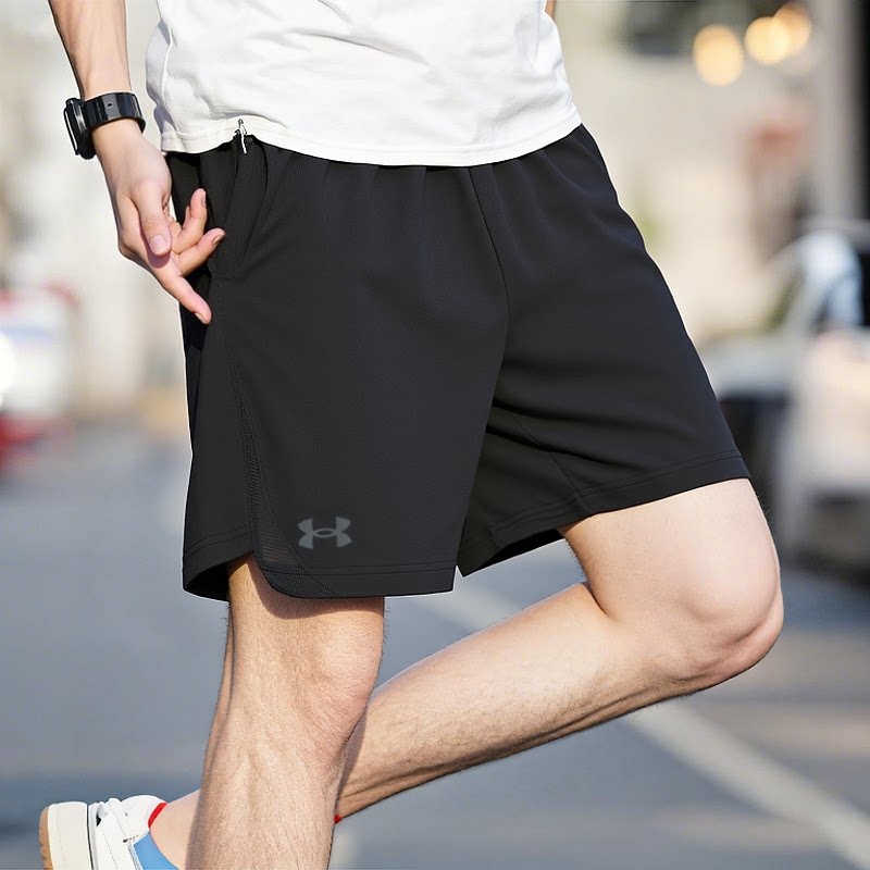 UA安德玛梭织薄款短裤男裤夏季新款跑步运动裤五分裤冰丝透气裤子