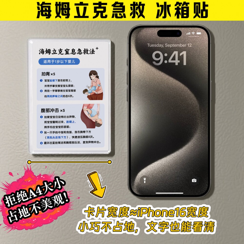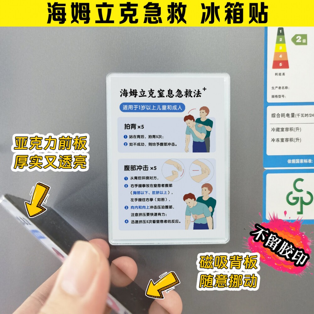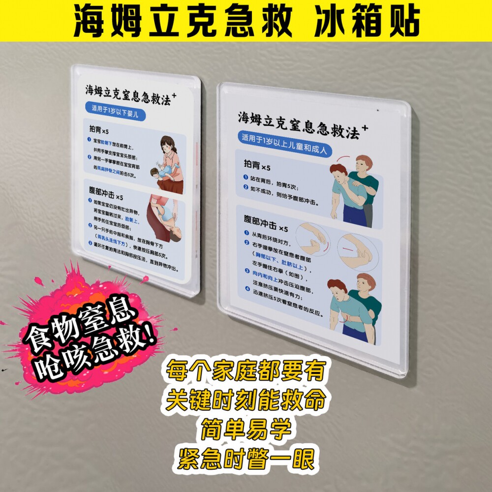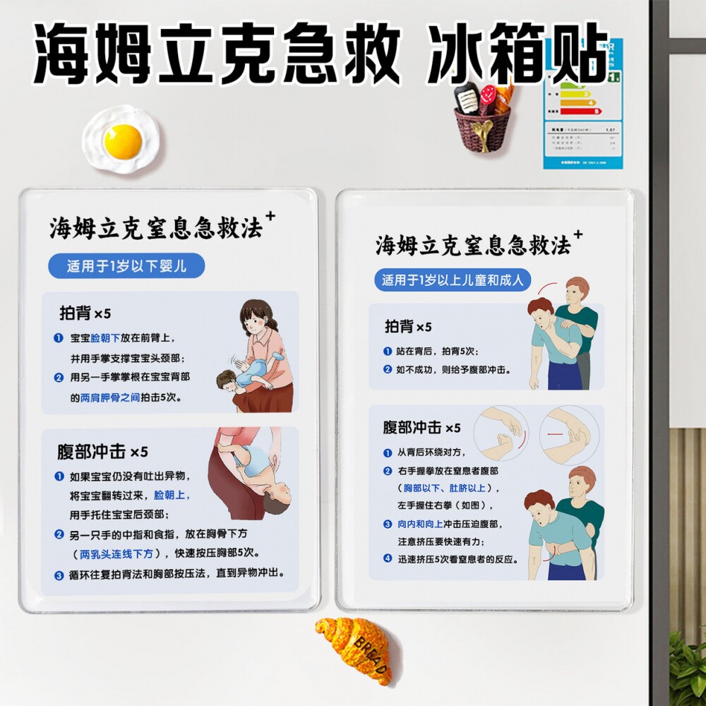 海姆立克急救法冰箱贴磁吸急救抢救磁吸式儿童窒息防噎婴儿新生儿抢救挂画磁性贴提示牌安全知识海报家用挂图