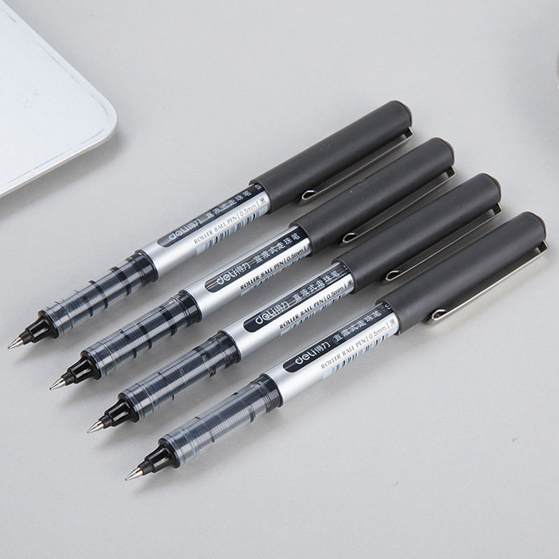 得力直液式走珠笔中性笔0.5红笔黑色碳素签字笔考试水笔学生用笔蓝色水性笔子弹头直液笔黑办公用笔盒装批发