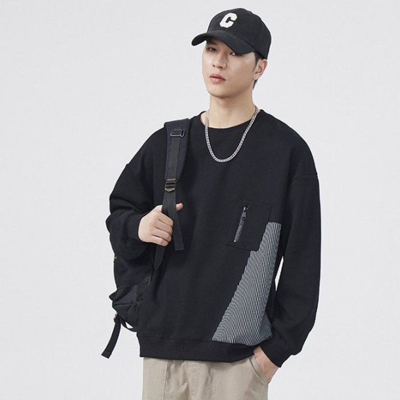 LE真维斯男装2025秋季新款 潮牌时尚男士拼色宽松设计感圆领卫衣