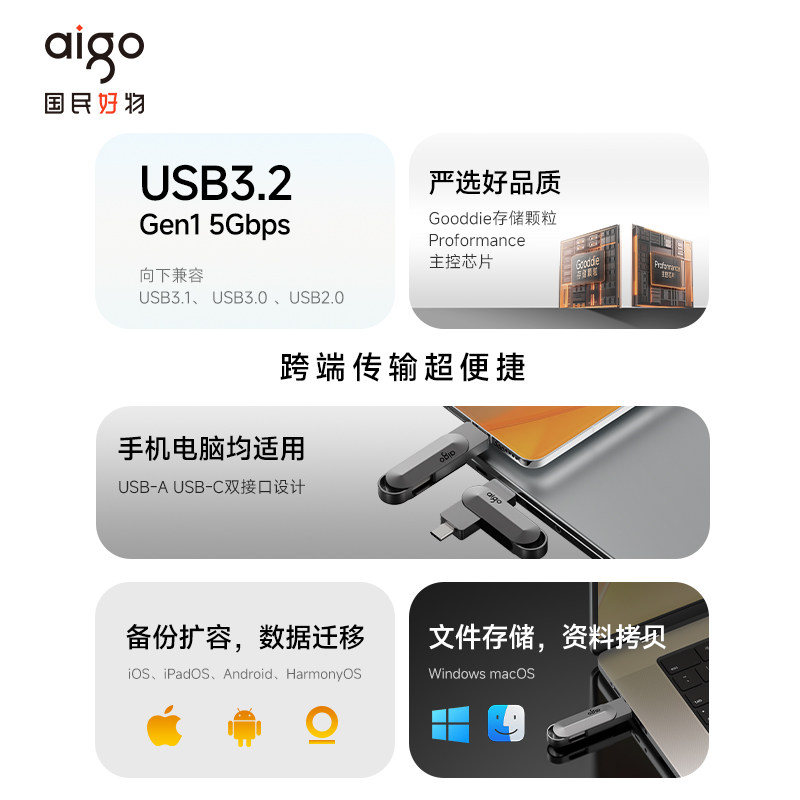 爱国者u盘正品typec双接口固态级手机电脑两用大容量定制128g优盘