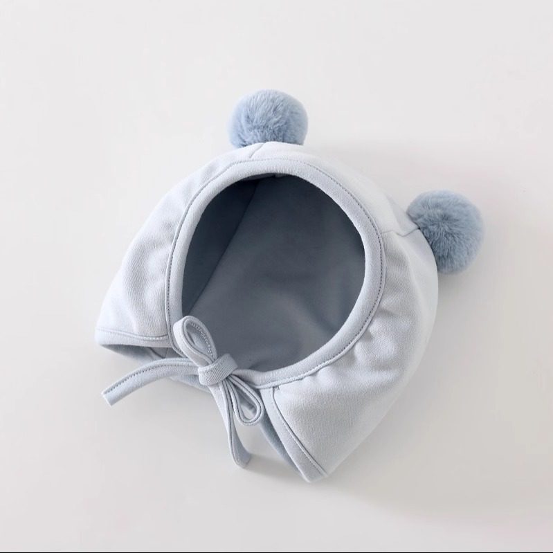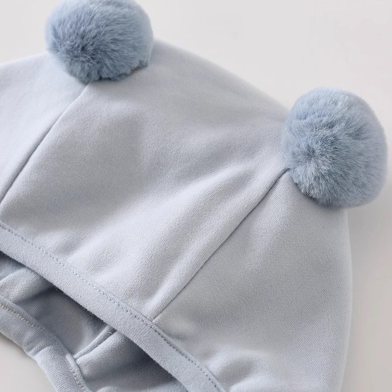 尼多熊婴儿帽子秋围脖一体宝宝毛绒帽防风护耳帽冬季保暖婴幼儿帽