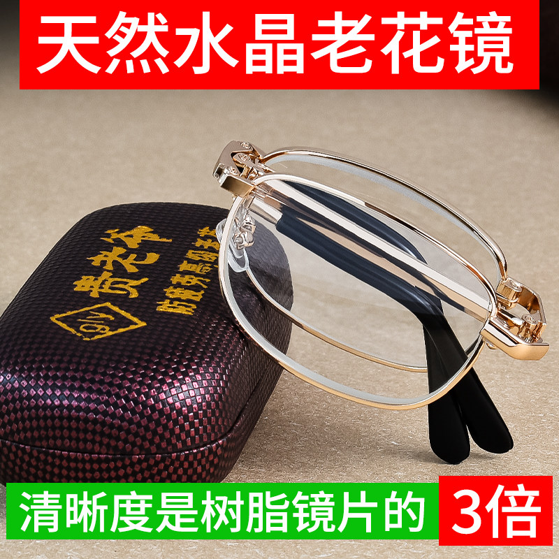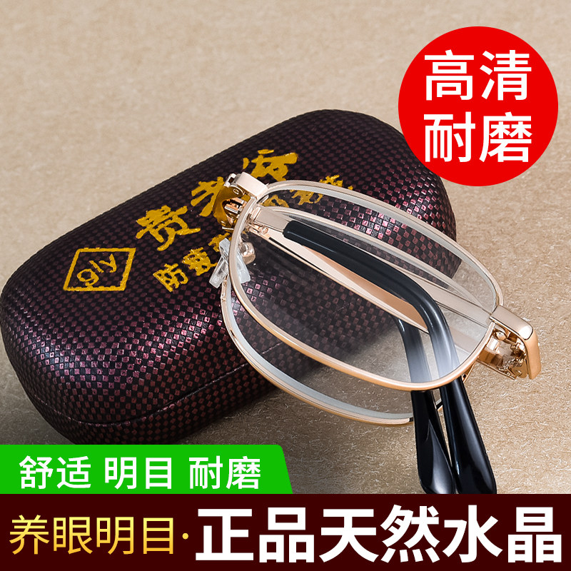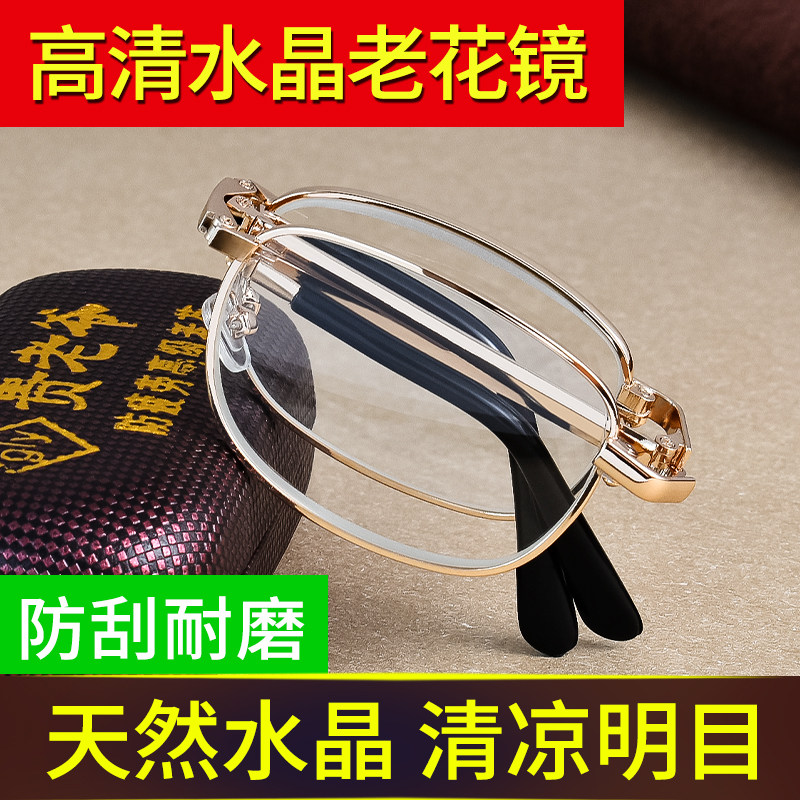 高档老花镜老花眼镜男中老年折叠水晶高清防蓝光天然石头老光眼镜