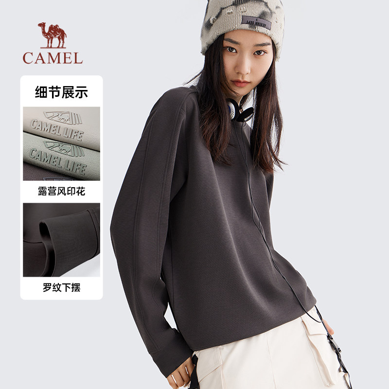 骆驼女装圆领卫衣2025春秋情侣纯色套头美式休闲长袖t恤男