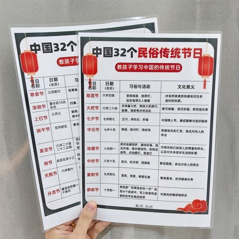 五十五个少数民族图鉴+32个民俗传统节日民族风俗特色挂图认知卡