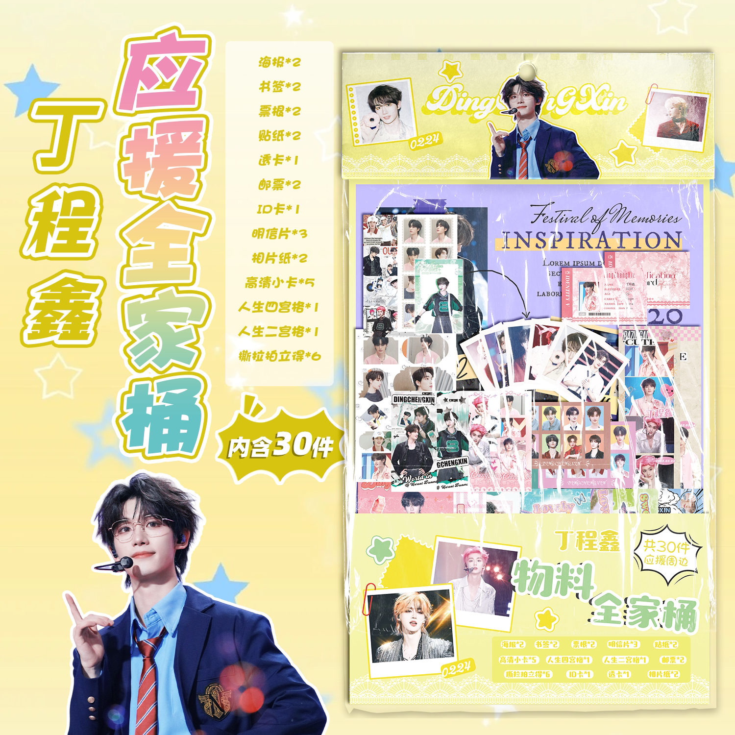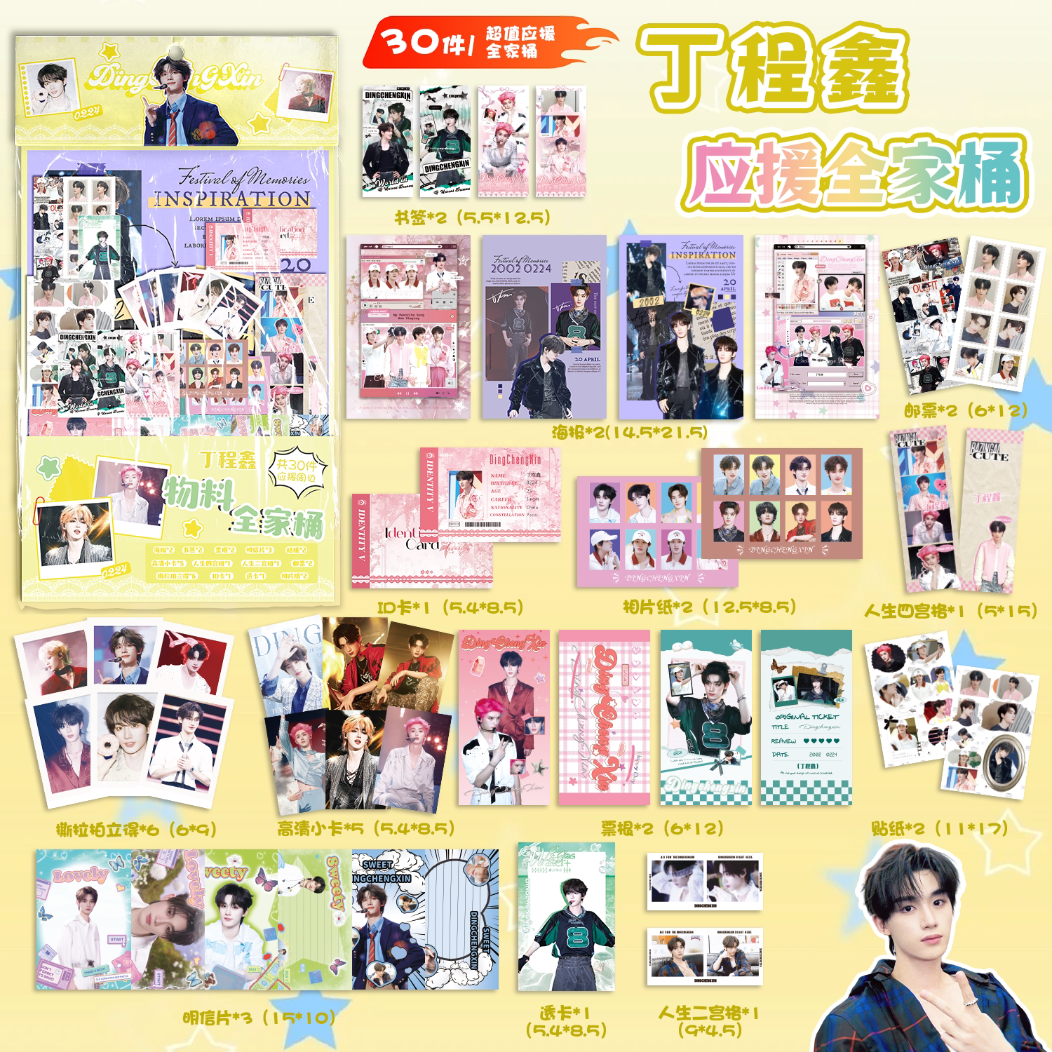 丁程鑫应援物料全家桶明星周边书签镭射小卡透卡明信片30件大礼包
