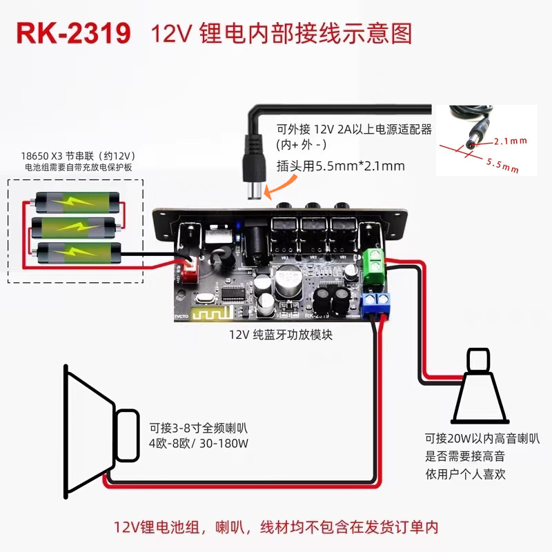 DIY改装蓝牙5.1功放模块接收器音响蓝牙音频适配器车载音箱功放板