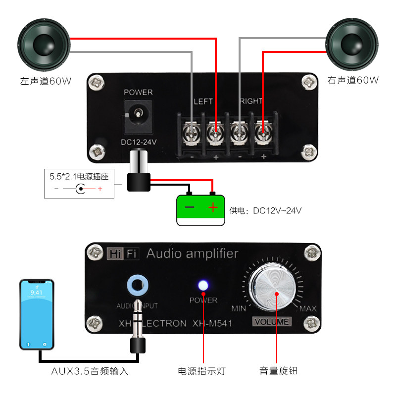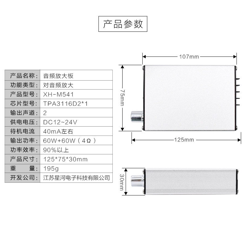 XH-M541 数字功放板超t清迷你型铝壳大功率功放成品板放大器12-24