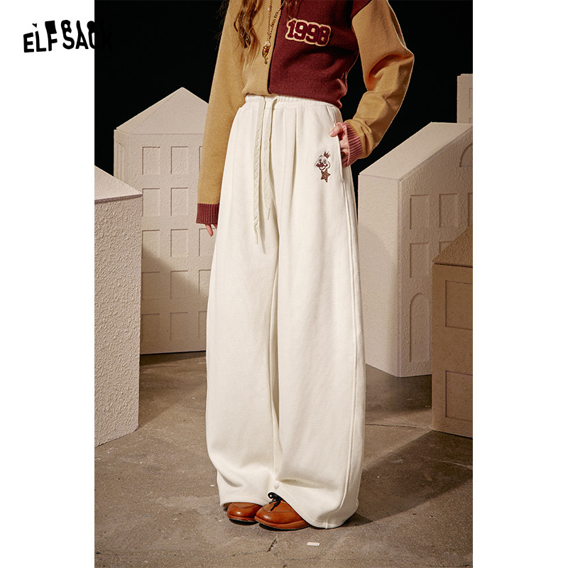 杨幂同款SIINSIIN2025新款白色加绒直筒裤女冬季厚显瘦运动小个子