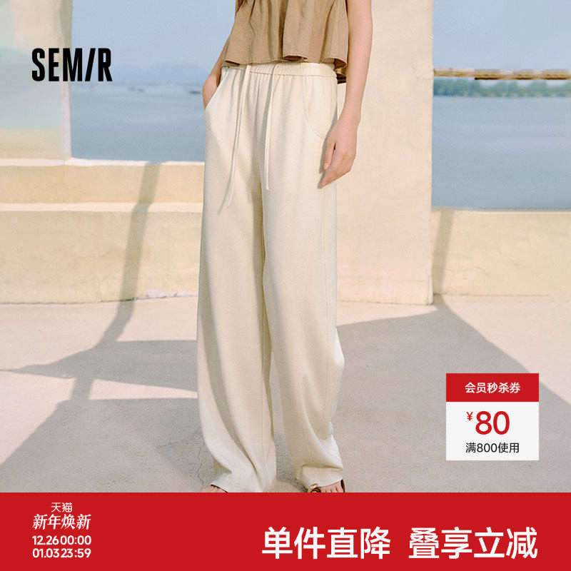 垂顺弯刀裤视觉显高显瘦 抽绳松紧包容身材