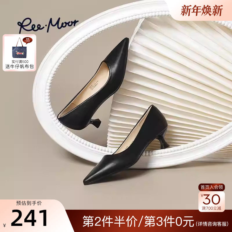 REEMOOR睿慕2025秋季新款猫跟气质中跟单鞋通勤尖头法式晚晚鞋女