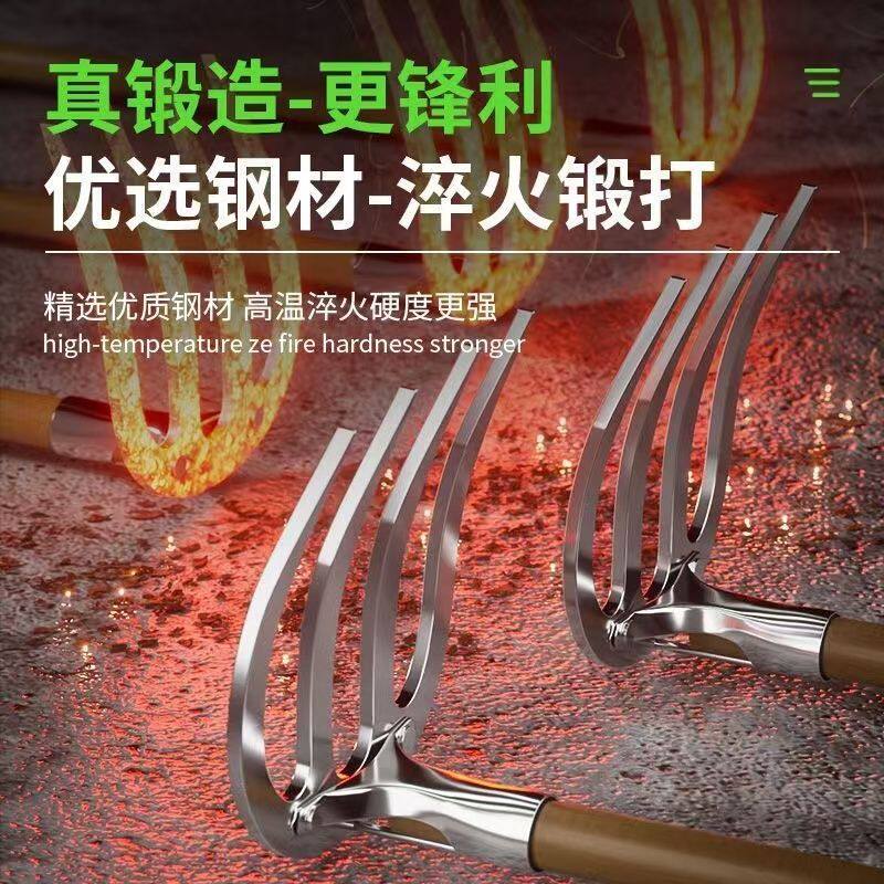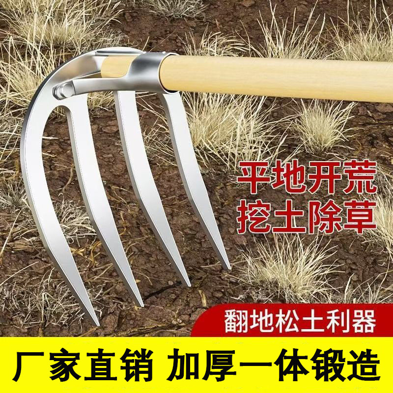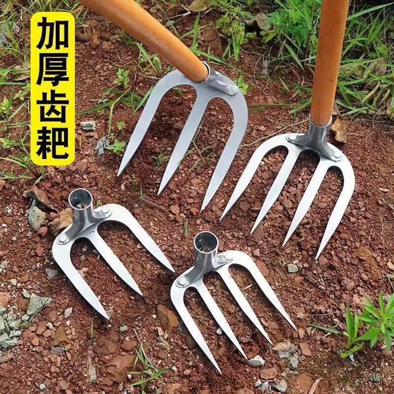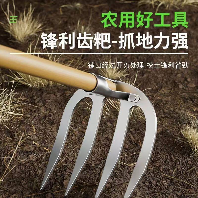 德国四齿农用铁耙子锄头刨地翻地松土神器园艺锰钢钉耙子镐锄铲草