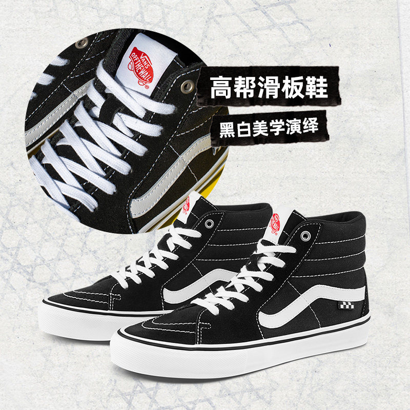 Vans范斯官方 Sk8-Hi黑色高帮男鞋女鞋职业滑板鞋滑板初学者