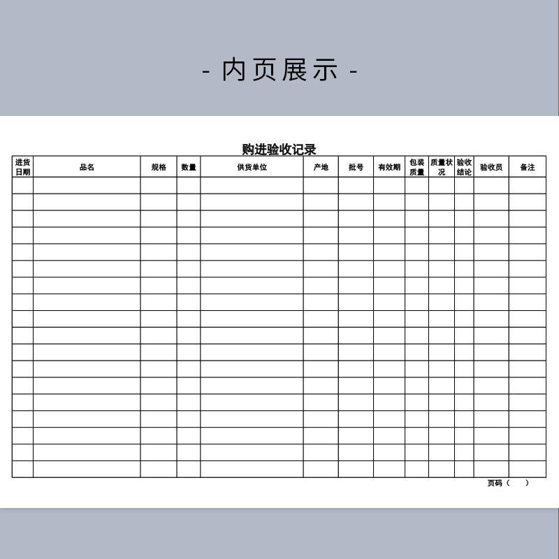 购进验收记录保健品医疗器材门店药房门诊药店购销记录本定制印刷