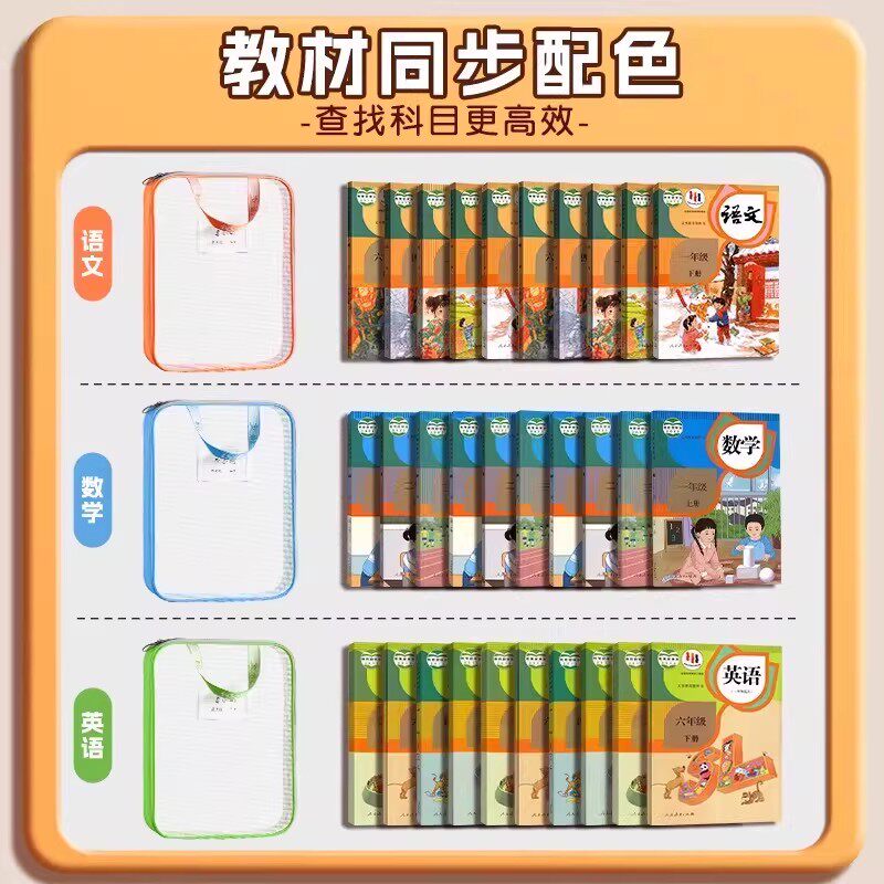 科目分类文件袋透明拉链式a4收纳拎书课外班作业男女孩书包小学初中生l型考试试卷学科补习网纱手提袋大容量