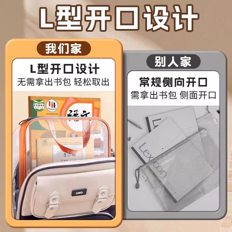 L型科目分类袋透明文件袋拉链式小学生网纱大开口手提拎书袋考试专用袋子初中生作业补习袋档案袋试卷收纳袋