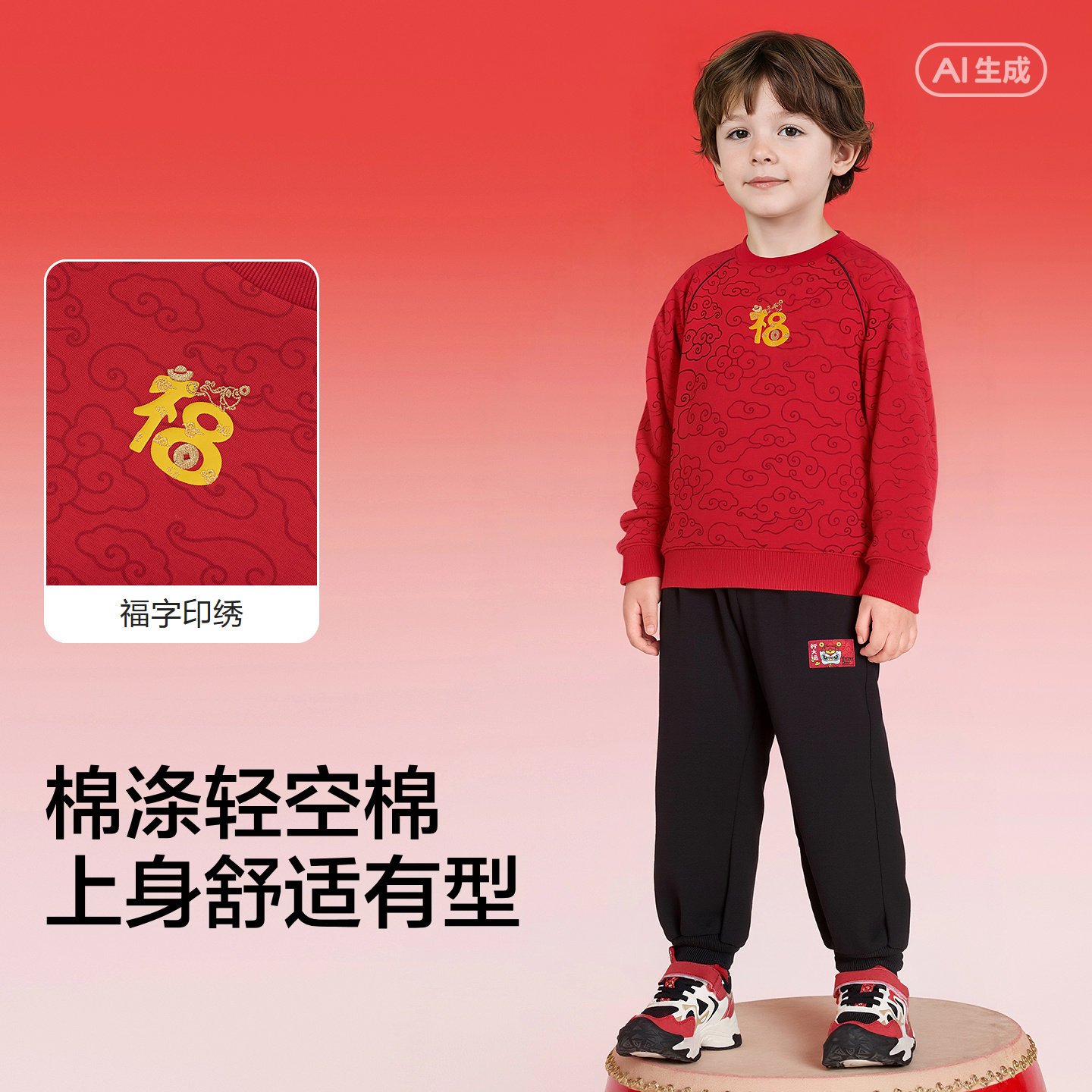 拜年服套装,国风祥云印花