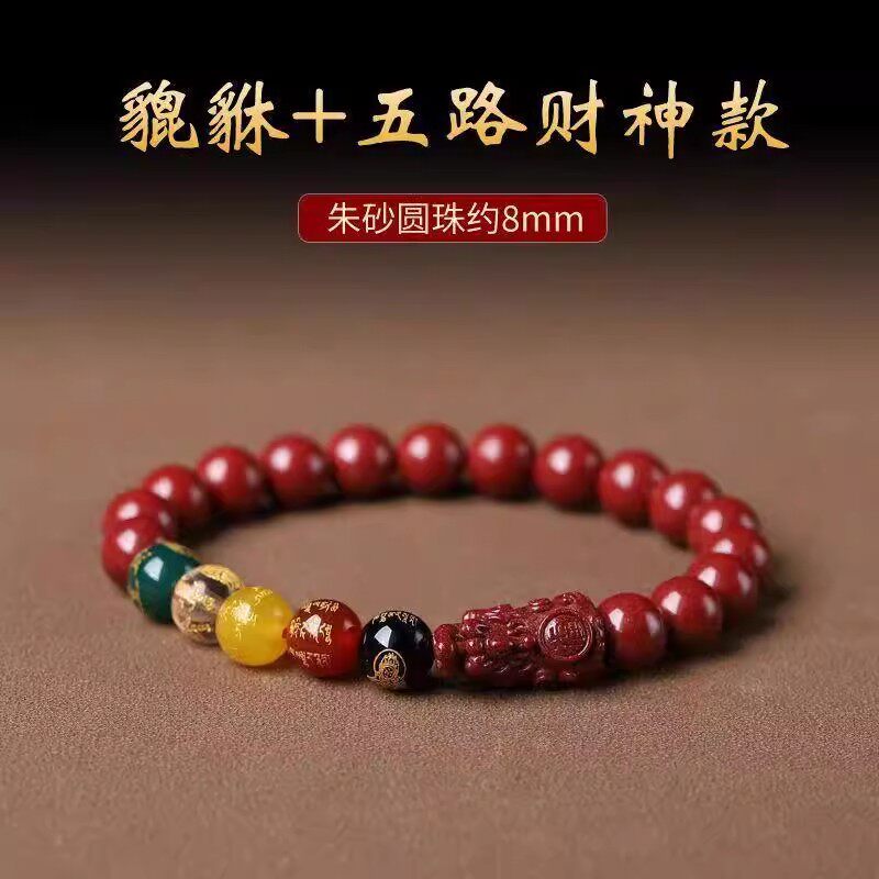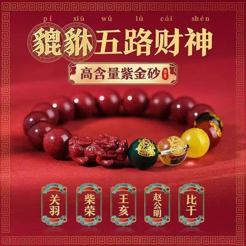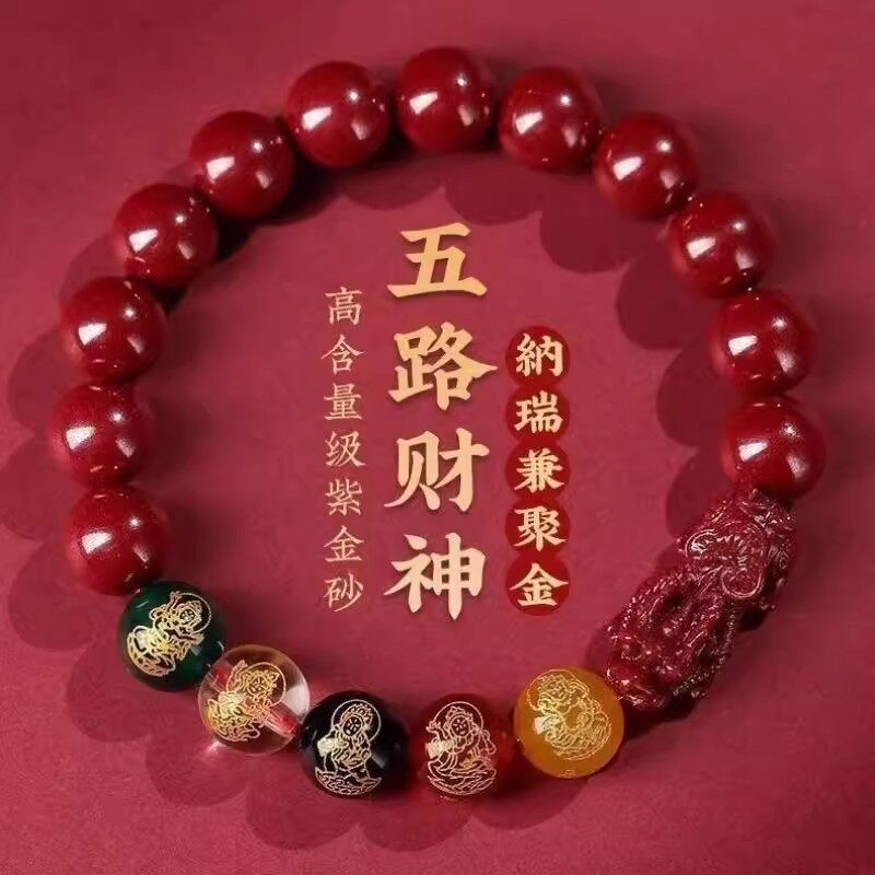五路财神转运手链天然朱砂手串紫金砂本命年女貔貅手链男女同款