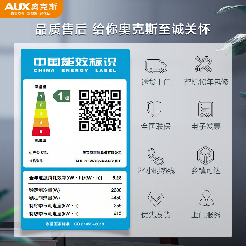 奥克斯空调省电侠挂机大1匹一级能效变频卧室家用正品官方旗舰店