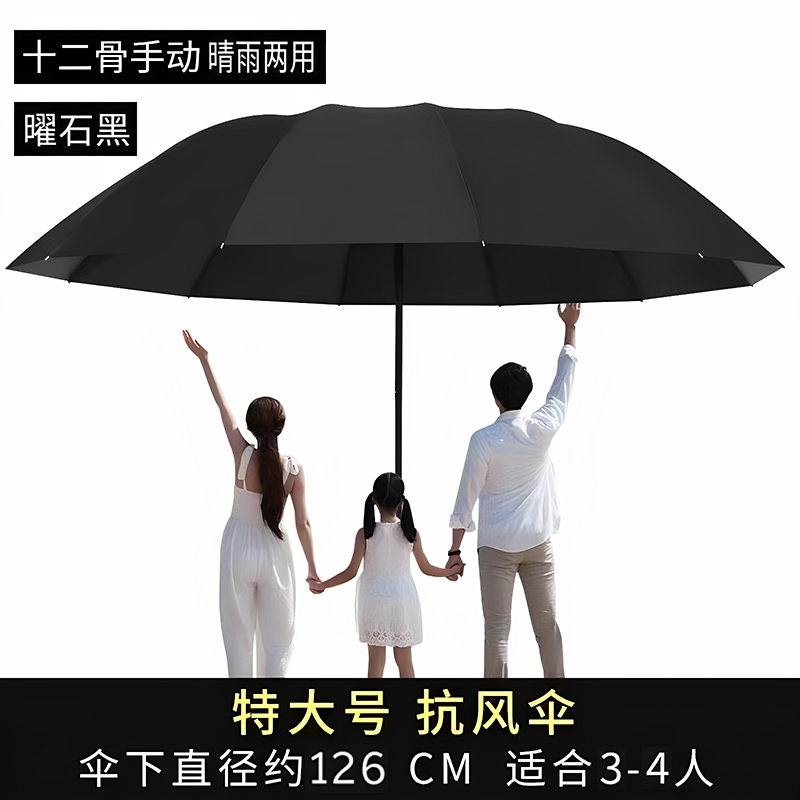 双人超大号12骨折叠雨伞男女三人加固晴雨两用学生防紫外线遮阳伞