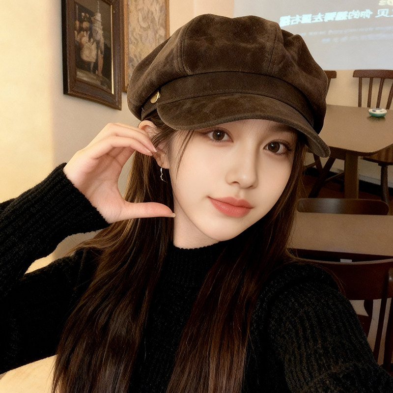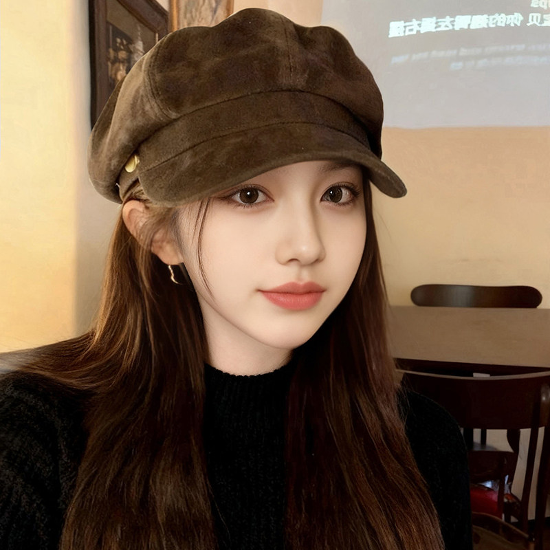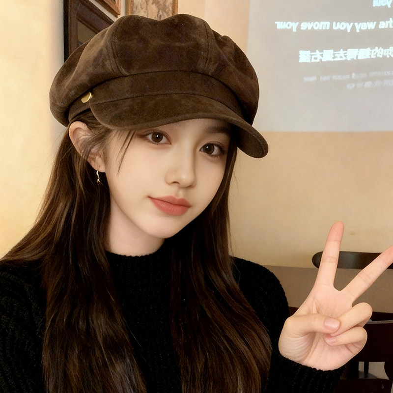 新款八角帽女秋冬复古贝雷帽韩系显脸小报童画家帽黑色时髦咖啡色