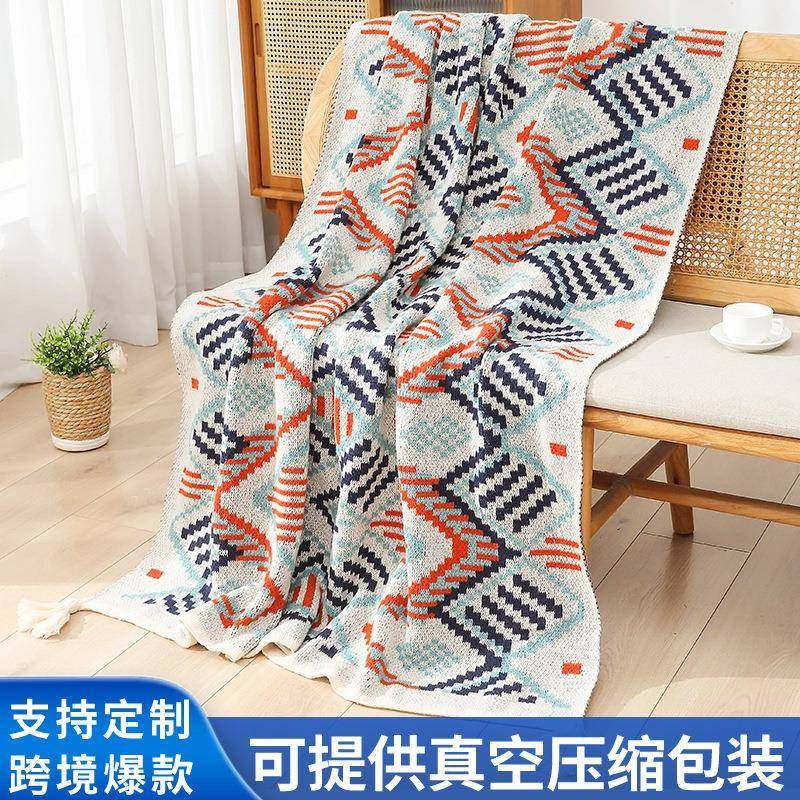 波西米亚沙发线毯披肩户外针织床尾毛毯子加厚秋冬沙发午睡航空毯